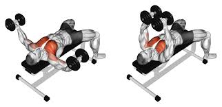 - Letakkan diri Anda pada bangku dengan miring ke belakang, pegang dumbbell di kedua tangan.